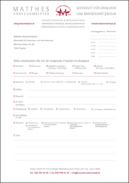 In die Anfrage- bzw. Bestellblättern haben wir für die Produktion wichtige Informationen einfließen lassen. Wir freuen uns wenn Sie diese benutzen, da dies einen schnellen und reibungslosen Ablauf garantiert.