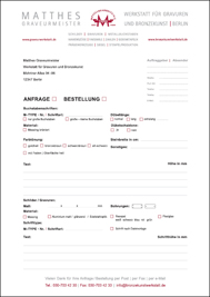 In die Anfrage- bzw. Bestellblättern haben wir für die Produktion wichtige Informationen einfließen lassen. Wir freuen uns wenn Sie diese benutzen, da dies einen schnellen und reibungslosen Ablauf garantiert.
